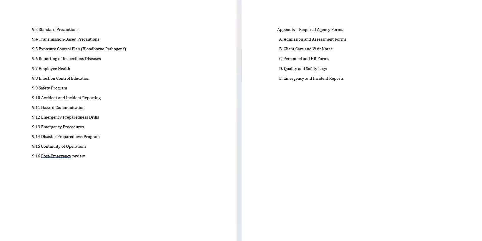 After purchase, we’ll reach out via email to collect your business information and personalize your manual. You’ll receive your custom-branded manual ready to review, edit, and print. Once printed and organized, your manual will serve as a professional, inspection-ready policy handbook for your team and regulators.