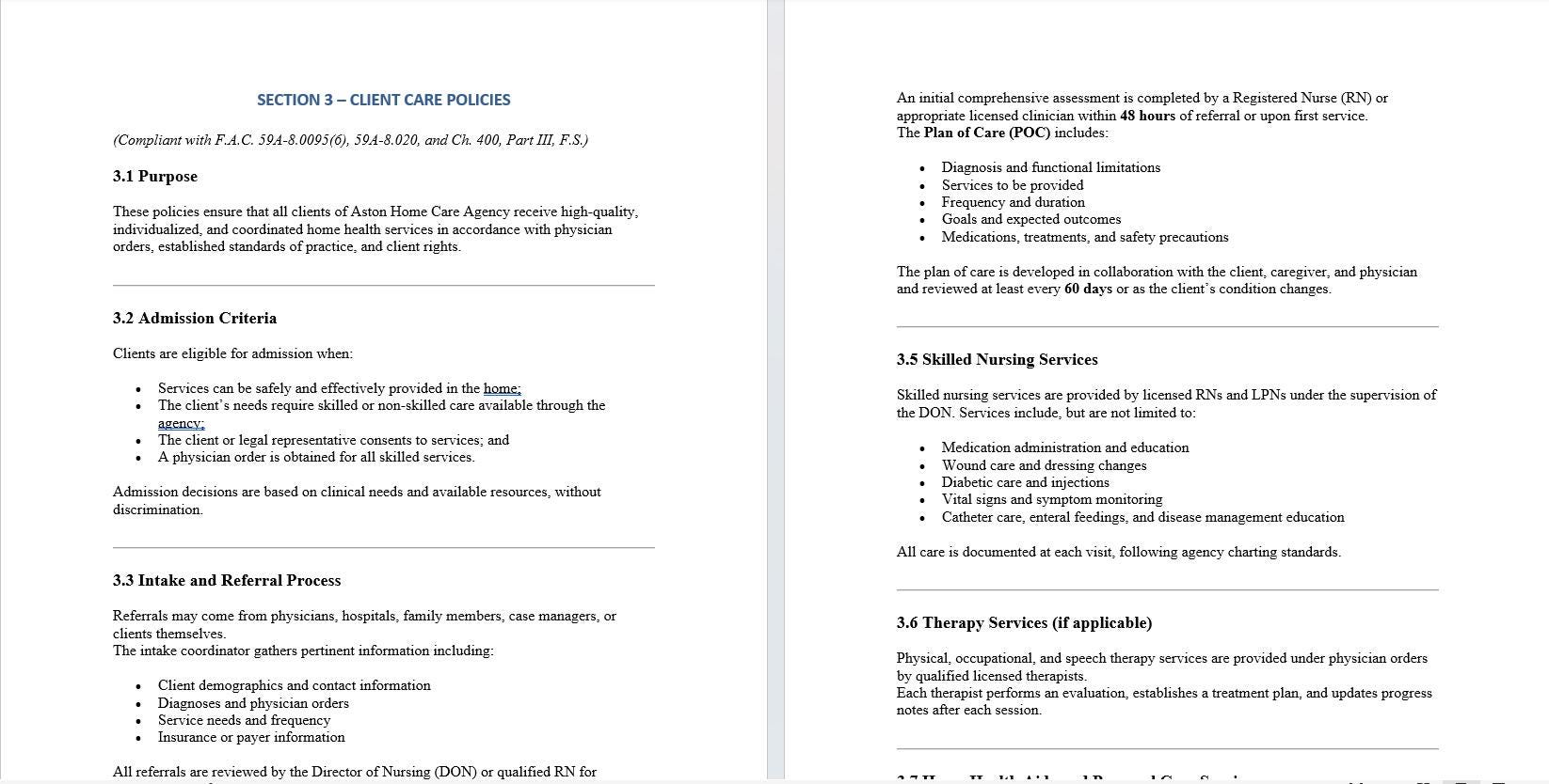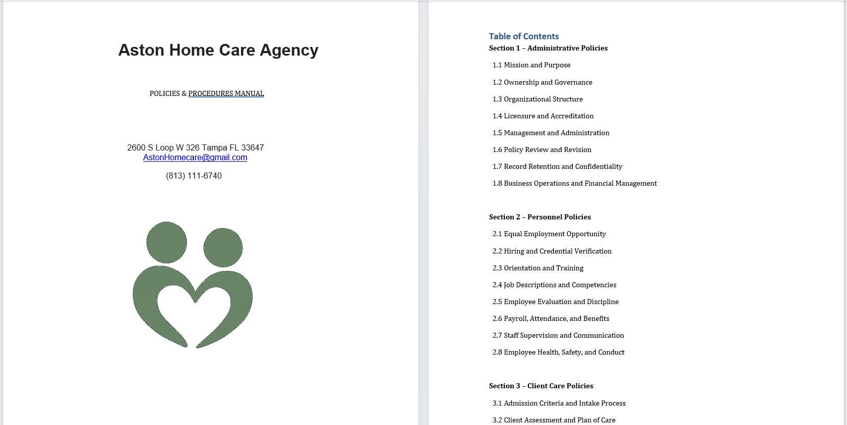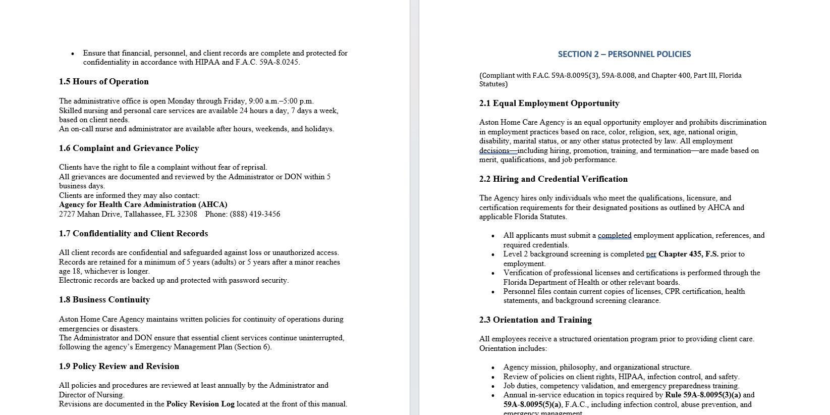 Complete Florida-Compliant Home Care Policy and Procedures Manual